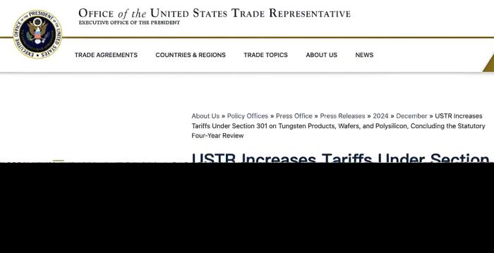 美国贸易代表办公室(USTR)宣布了一项备受关注的决定,从2025年1月1日起,美国将对从中国进口的某些产品加征最高50%的关税。这一决定立即引起了全球范围内的广泛关注和讨论,尤其是对中国相关产业和美国消费者可能产生的影响。