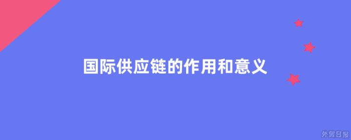 国际供应链的作用和意义是:1.国际供应链可增强企业的国际竞争力 2.国际供应链可缩短物流时间 3.国际供应链可降低库存和成本 4.国际供应链可提高产品质量和改进服务质量